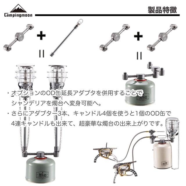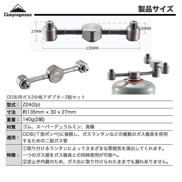 キャンピングムーン(CAMPING MOON) OD缶ガス2分岐アダプター 2点セット ガスキャンドル ガスランタン 分離アダプター ねじ込み式 ガスステーション Z24-2P