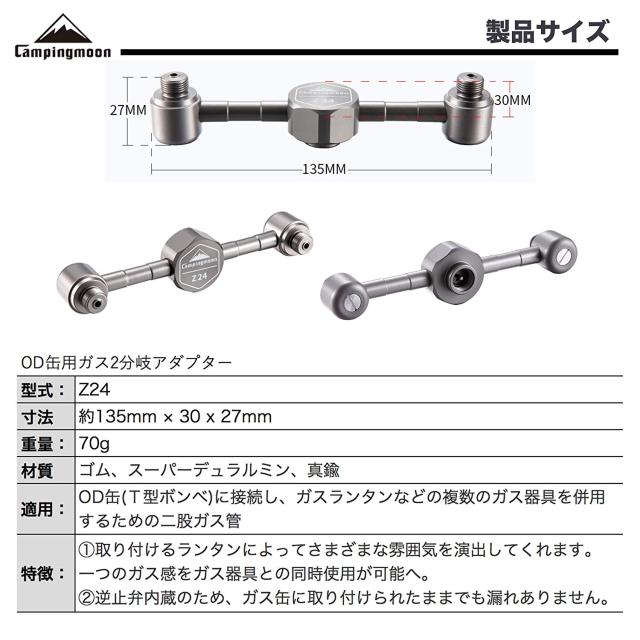 キャンピングムーン(CAMPING MOON) OD缶 ガス2分岐アダプター ガスキャンドル ガスランタン 分離アダプター ねじ込み式 ガスステーション Z24