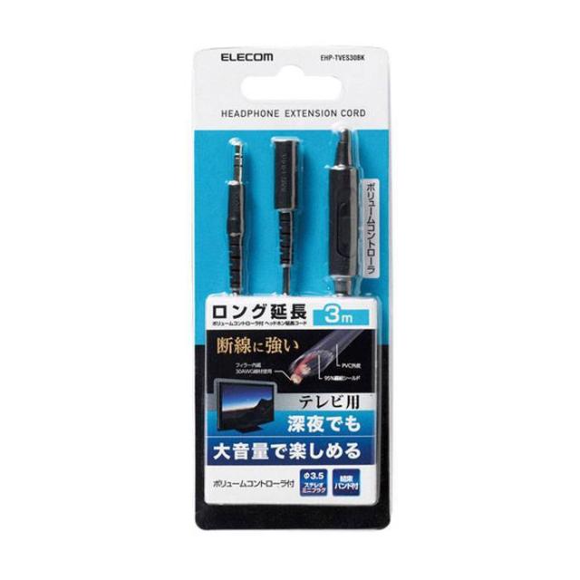 即納 代引不可 TV用 ヘッドホン延長コード 高耐久モデル 3.0m ロングコード ボリュームコントローラー付 エレコム EHP-TVES30BK