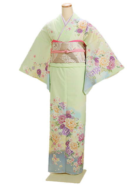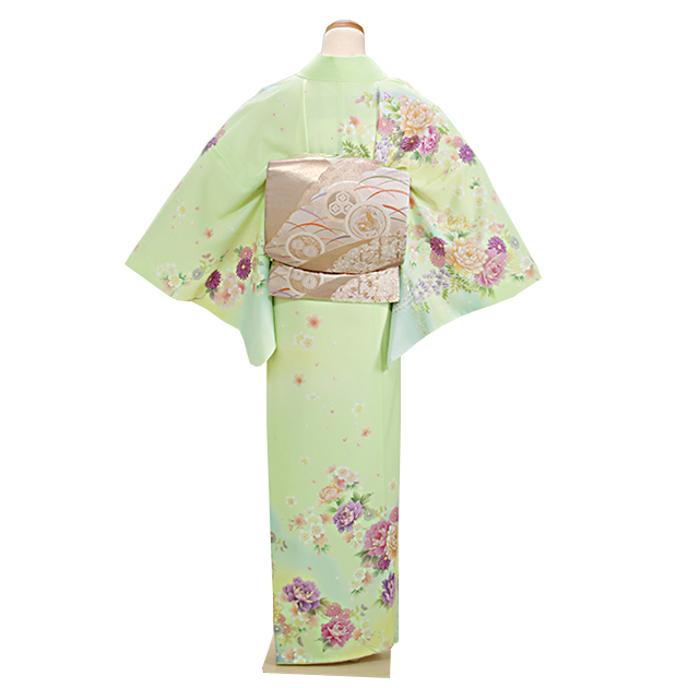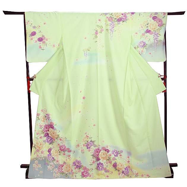 訪問着 レンタル 付下げ 黄緑・うすグレー色 NT-183 お宮参り お茶会 送料無料