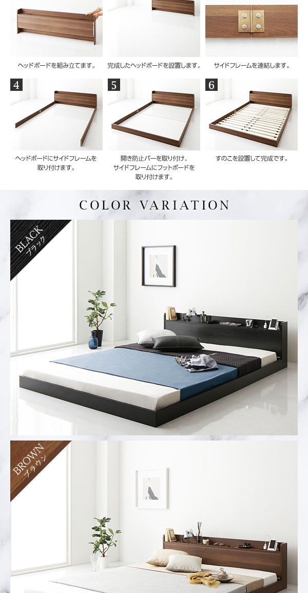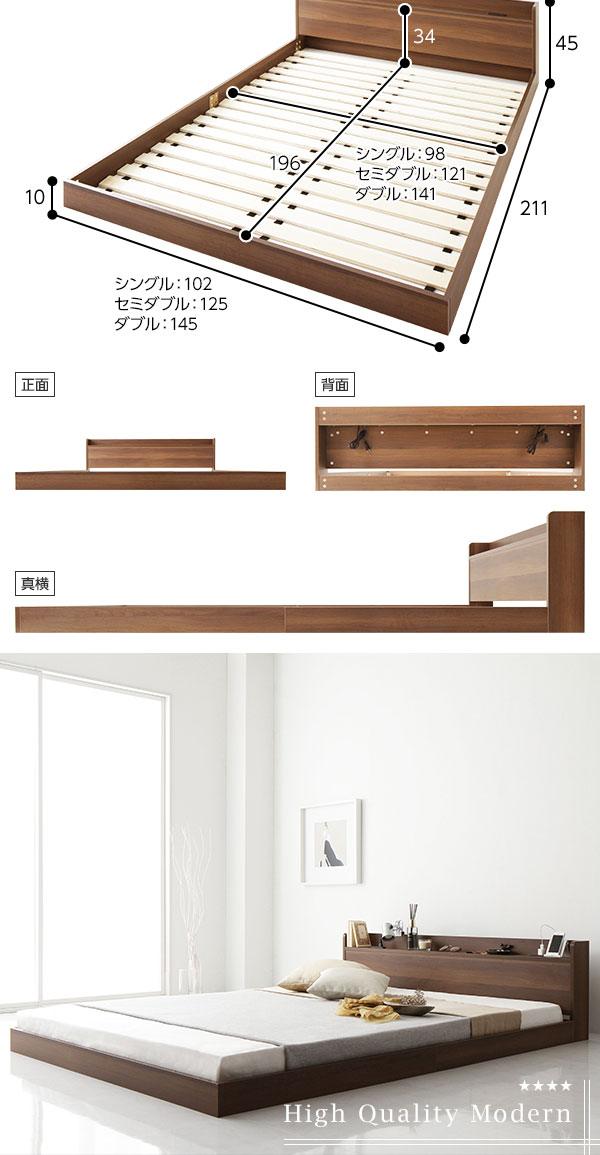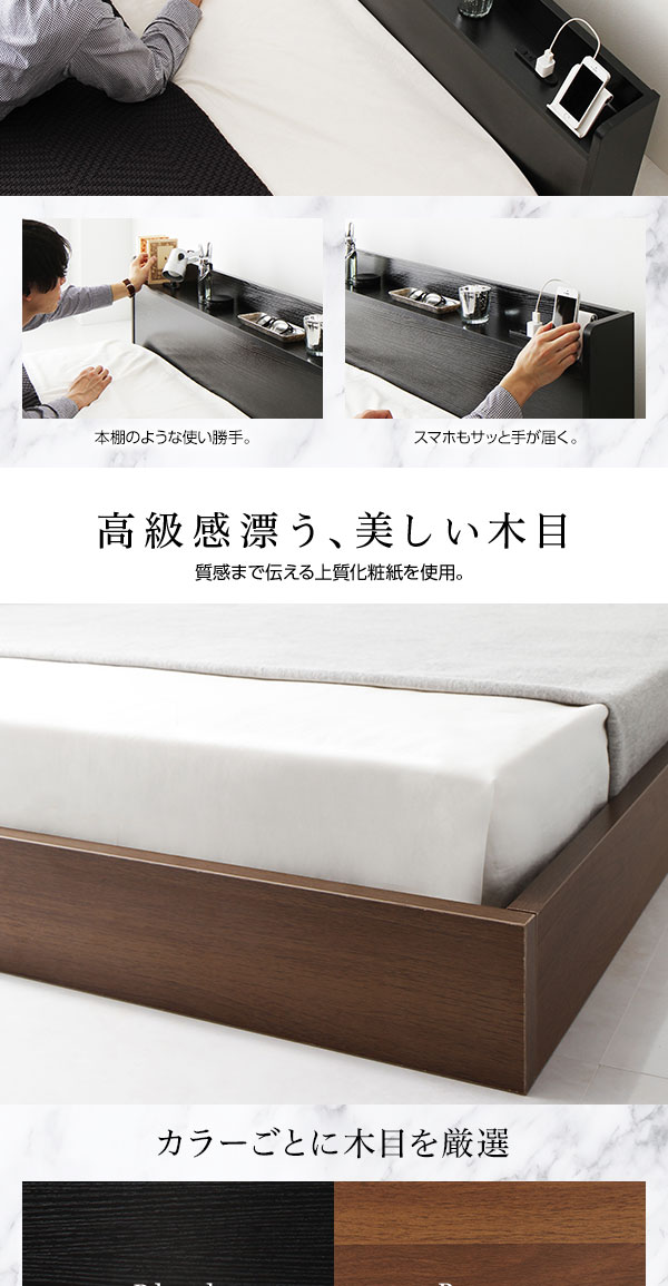 ベッド 低床 ロータイプ すのこ 木製 宮付き 棚付き コンセント付き シンプル モダン ブラウン シングル ボンネルコイルマットレス付き 【北海道・沖縄・離島配送不可】