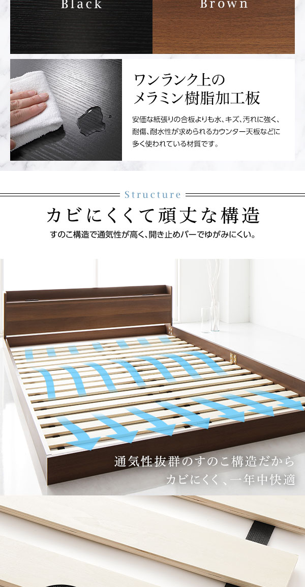 ベッドフレームには必ずスプリングマットレスを乗せてご使用ください。
