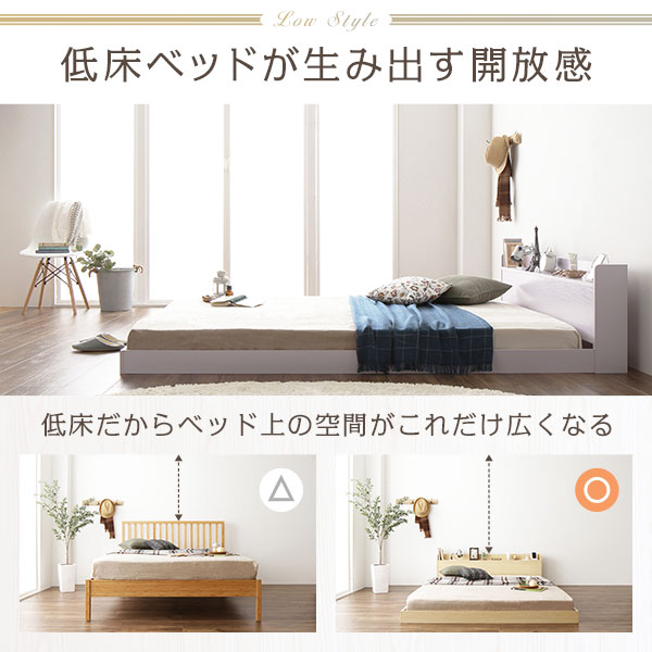 ベッド 低床 ロータイプ すのこ 木製 宮付き 棚付き コンセント付き シンプル モダン ナチュラル シングル ボンネルコイルマットレス付き 【北海道・沖縄・離島配送不可】