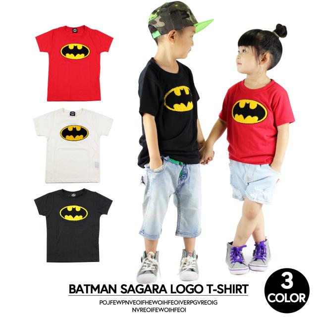【SALE】バッドマン ロゴ Tシャツ サガラ ホワイト ブラック レッド 100cm 110cm 120cm 130cm 140cm 半袖 子供服 キッズ