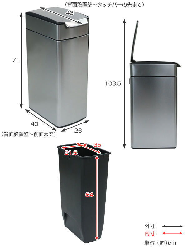 正規品 ゴミ箱 シンプルヒューマン スリム ふた付き simplehuman 40L スリムタッチバーダストボックス ( 縦型 ごみ箱 キッチン 分別 ごみばこ ダストボックス タッチ式 ステンレス おしゃれ 40 リットル )