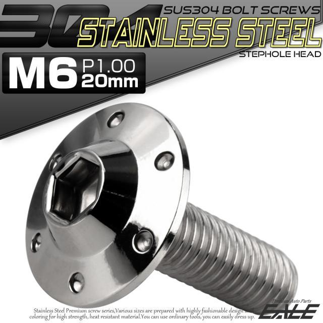ボタンボルト M6×20mm P1.00 ステップ ホールヘッドボルト フランジ付 六角穴 SUS304 ステンレス シルバー TR0179