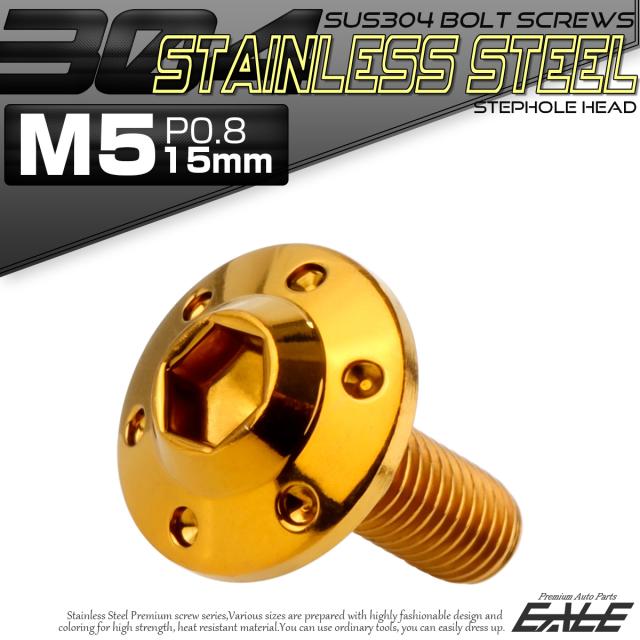 ボタンボルト M5×15mm P0.8 ステップ ホールヘッドボルト フランジ付 六角穴 SUS304 ステンレス ゴールド TR0187