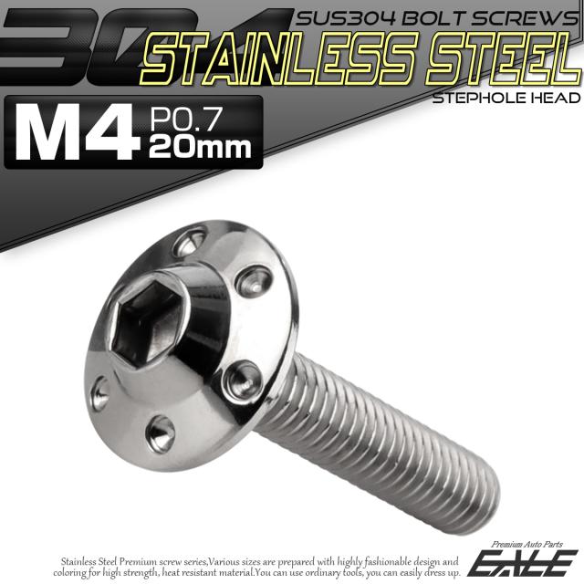 ボタンボルト M4×20mm P0.7 ステップ ホールヘッドボルト フランジ付 六角穴 SUS304 ステンレス シルバー TR0171