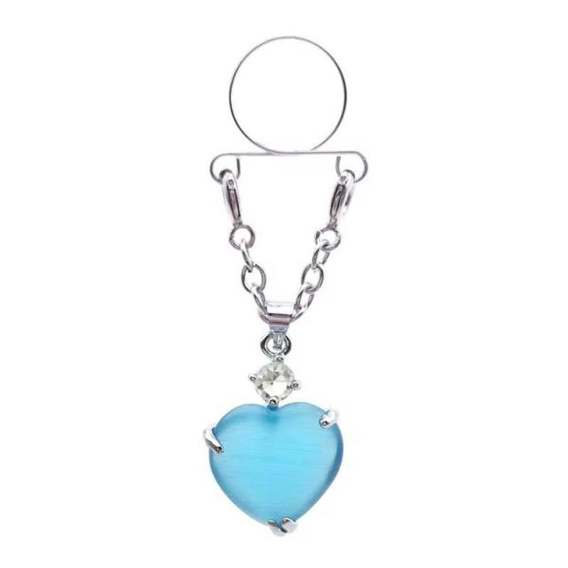 ブルービッグハート ニップルクリップ 1個販売 水色 アクア クリスタル ジルコニア 可愛い プレゼント メンズ レディース 乳首 はさむ ノンホール 開けない 絞める ボディピアス ステンレス製 フェイク ボディーピアス 女性 彼女 大人 ニップルハガー ニップルネックレス