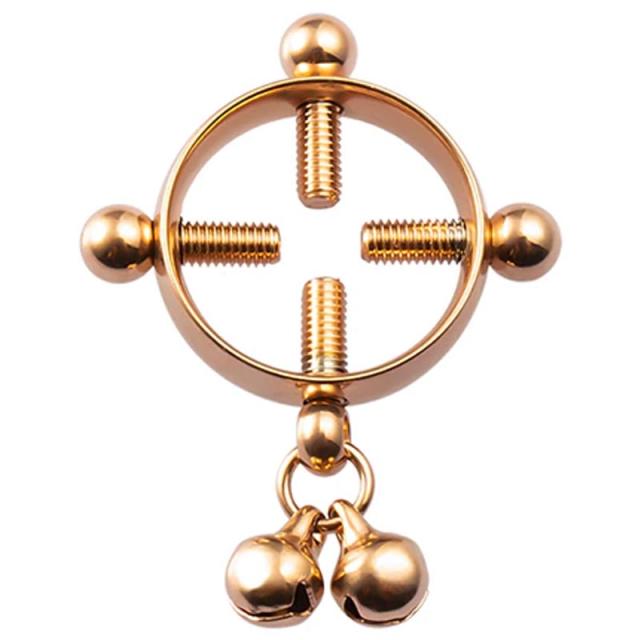 鈴付き ピンクゴールドリングニップルクランプ ノンホールピアス 1個販売 乳首 穴をあけない ボディピアス メンズ レディース はさむ ねじを締める ステンレススティール おもしろ 面白い オモシロ プレゼント リング型 4本 ネジ ボディーピアス ベル リンリン