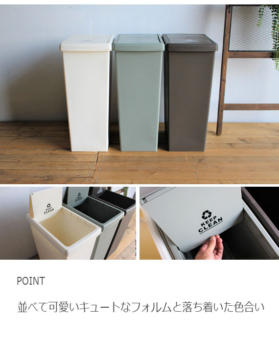 Slide Pail スライドペール 45L (ゴミ箱 ダストボックス スライド 蓋 45L 45リットル レトロ グリーン ブラウン ホワイト 国産)