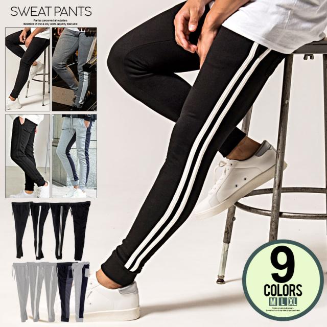 スウェットパンツ メンズ ラインパンツ リブパンツ スエットパンツ ジョガーパンツ 大人 カジュアル おしゃれ スポーツ スリム 細身 ブラック グレー 黒 M L XL ルームウェア 部屋着 CavariA 20代 30代 40代 メンズファッション 即日発送 [CAJP19-17]