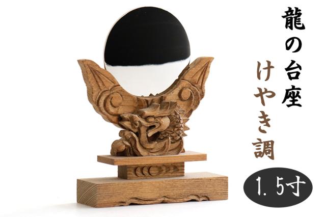 神棚 鏡 小型 龍彫り 神鏡 1.5寸 手塗り 家具調 けやき調 竜彫 モダン 胡桃 神具 極上 彫り 依代 ご神体に 龍神 守護 家具調モダン神棚