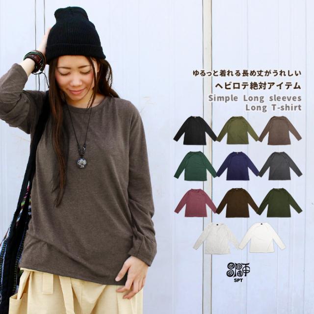 【メール便送料無料】Tシャツ カットソー ユニセックス シンプルロング丈長袖Tシャツ ブラック カーキ ブラウン SPT