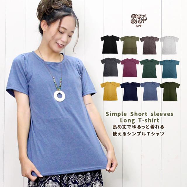 トップス レディース シンプルロング丈半袖Tシャツ 春夏 ブラック カーキ ブラウン 【メール便OK】