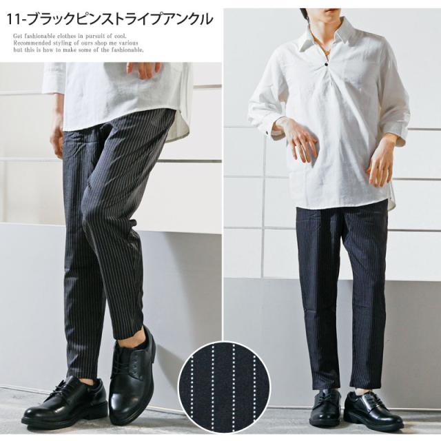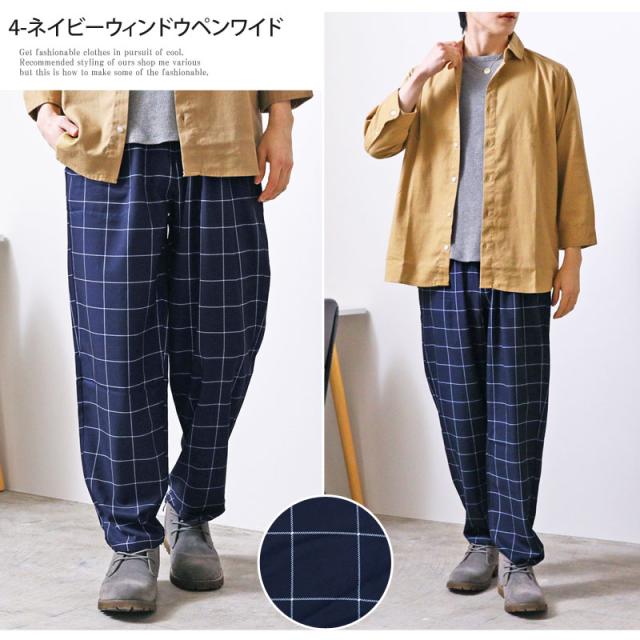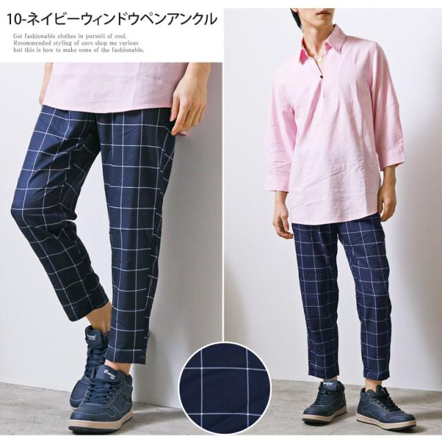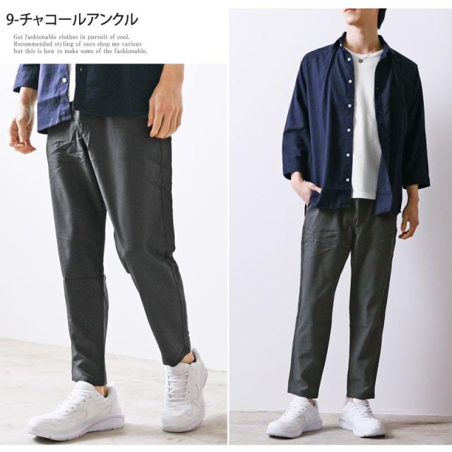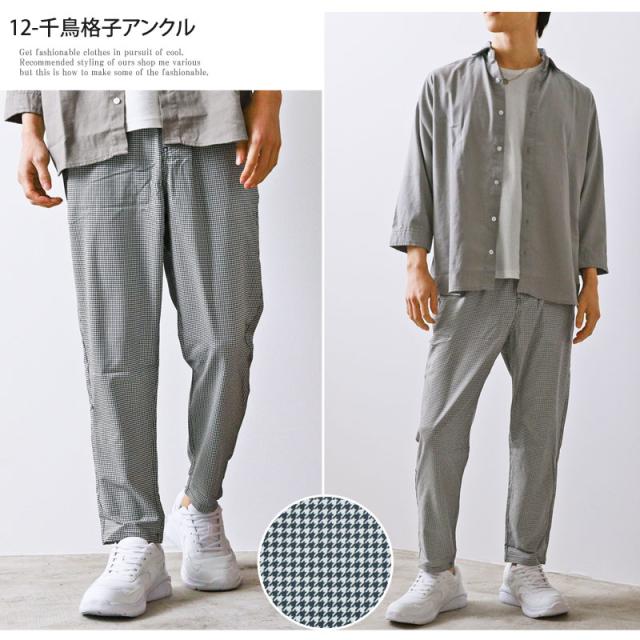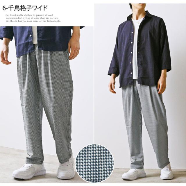 M~XXL 新作 春 夏 ワイドパンツ メンズ テーパードパンツ 選べる2タイプ 接触冷感 ストレッチ アンクルパンツ 無地 チェック ストライプ 千鳥格子 送料無料 リニューアルVer 大きいサイズ ゆうパケ