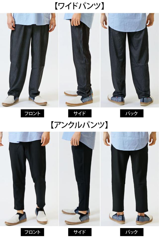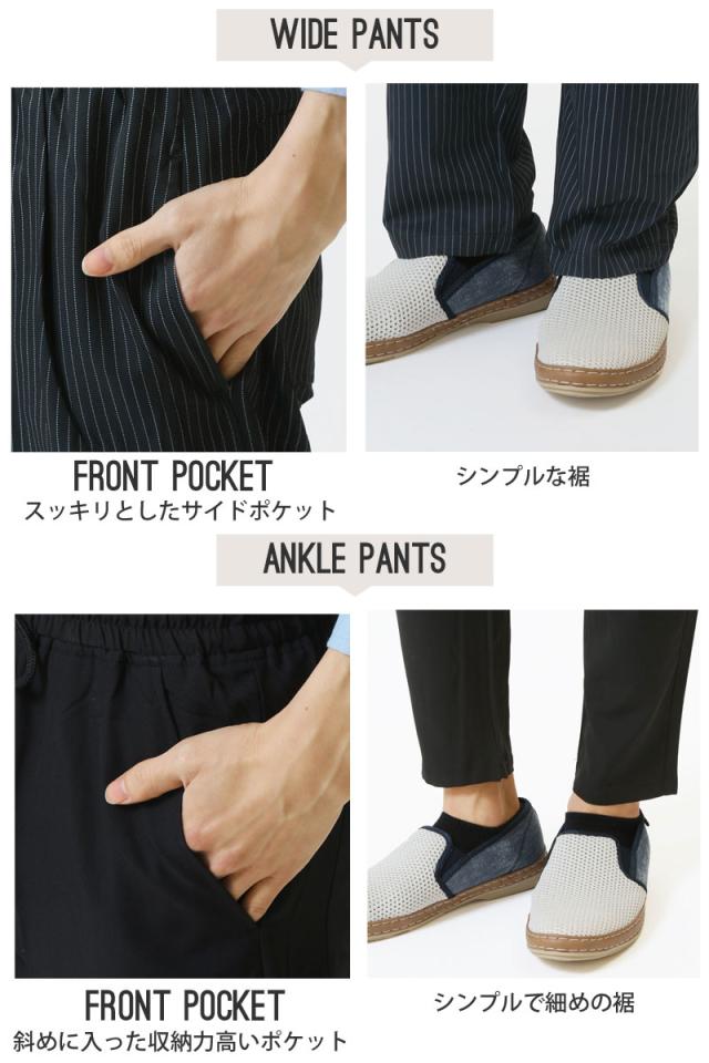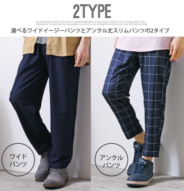 選べるワイドイージーパンツとアンクル丈スリムパンツの2タイプ!