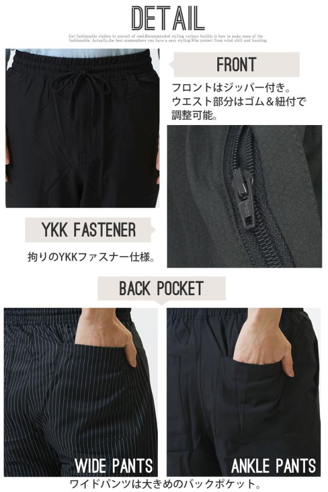 ウエストは総ゴム仕様なので男女兼用で気軽に着用できます。
