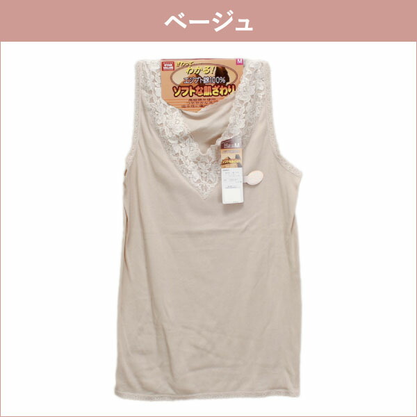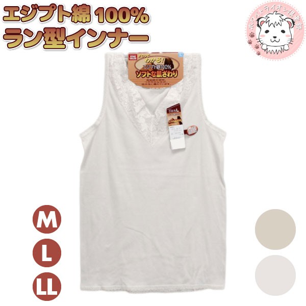 さわってわかるエジプト綿 幅広レース 綿100% ラン型インナー 2枚セット M/L/LL | レース ノースリーブ タンクトップ レディース オールシーズン インナー