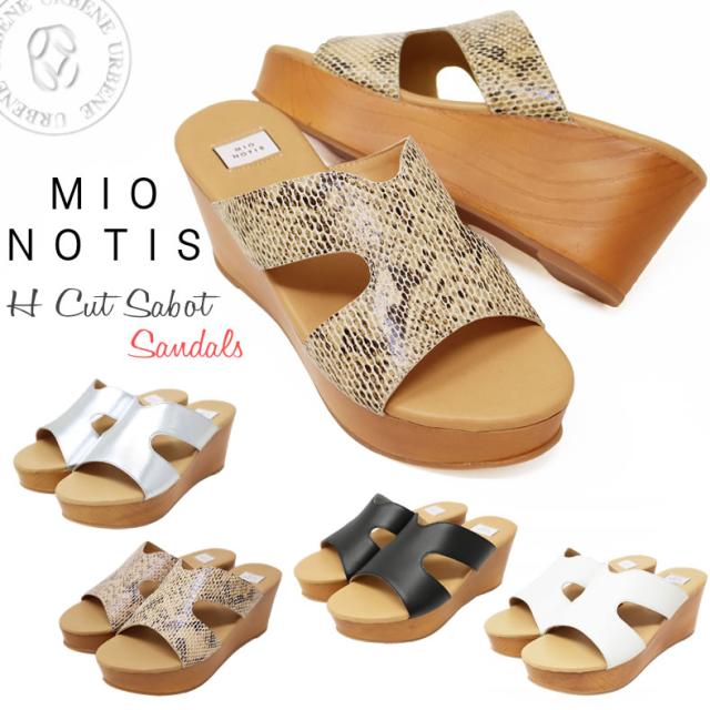 mio notis ミオノティス Hカットサボサンダル ウッド調 ウエッジソール 1000m 厚底 ミュール レディース 靴 本革 ブラック シルバー ホワイト パイソン サマーサンダル レディース靴 おしゃれ アーベン 普段使い 実用的 2026年