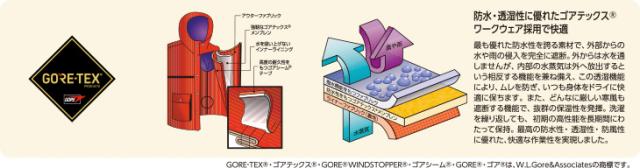 高耐水性・高透湿性、高視認性(JIST8127適合/ISO20471適合)、高輝度ガラスビーズ反射材(反射テープ幅:50mm)、防水仕様、反射材、撥水加工