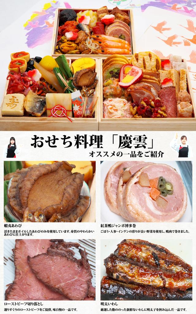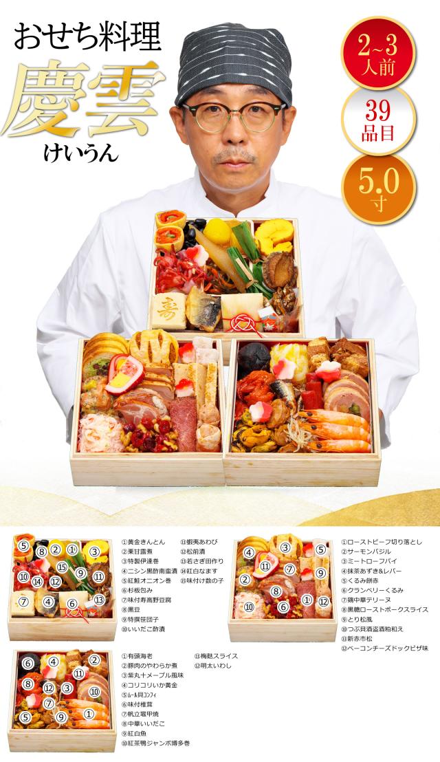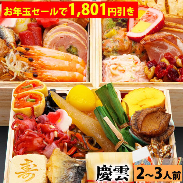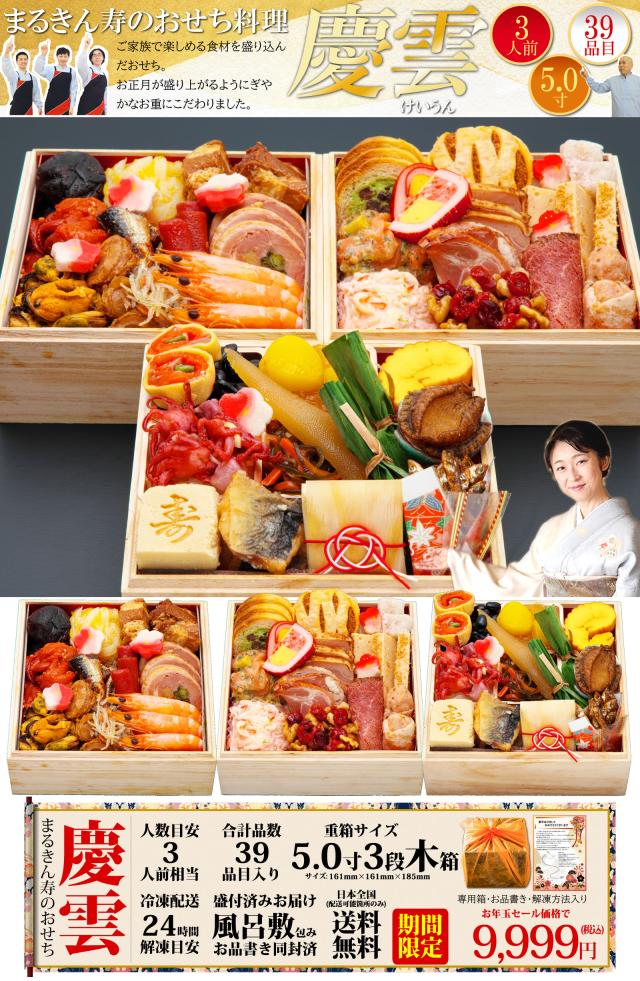 【12月22日まで限定のお年玉セールで1,801円引き】三段重おせち「慶雲」 5.0寸3人前4人前39品入 全国送料無料 定番 高級 有名店 おせち