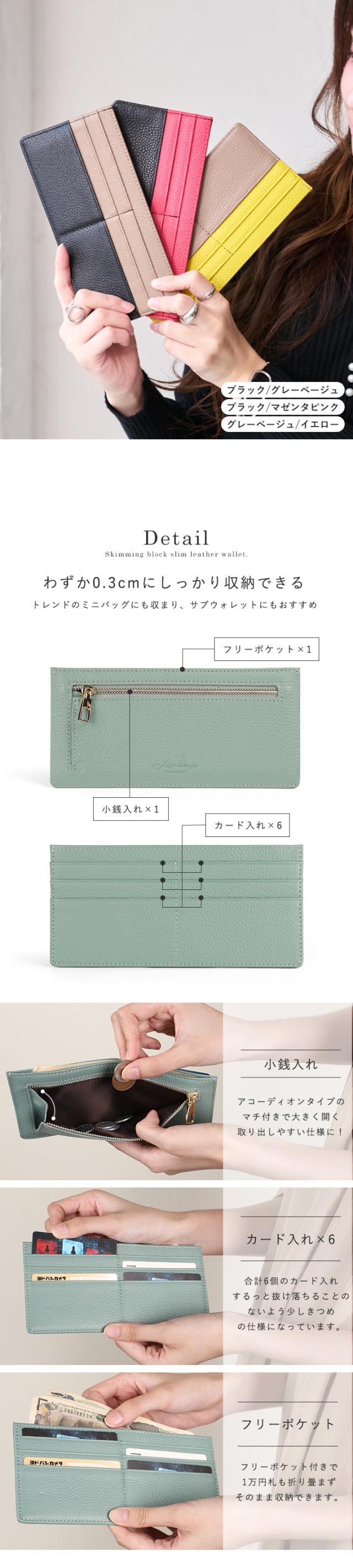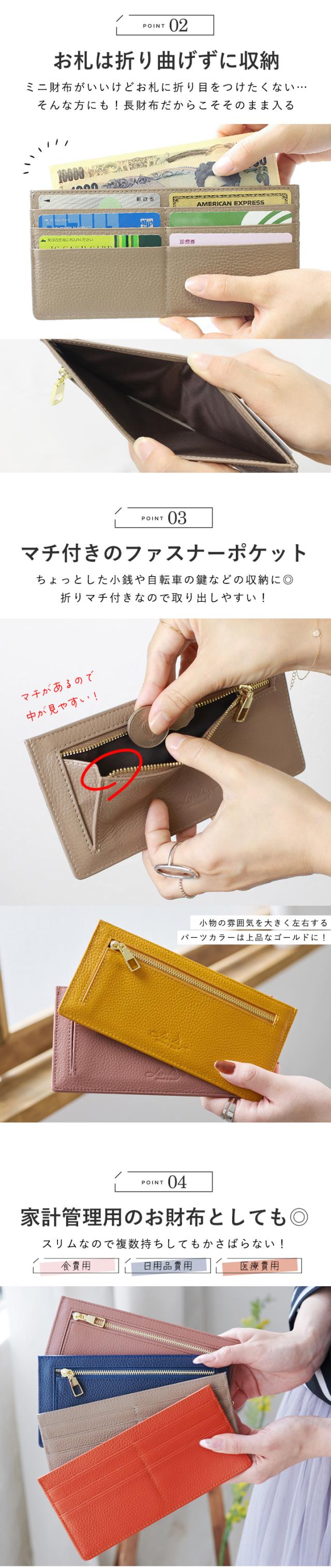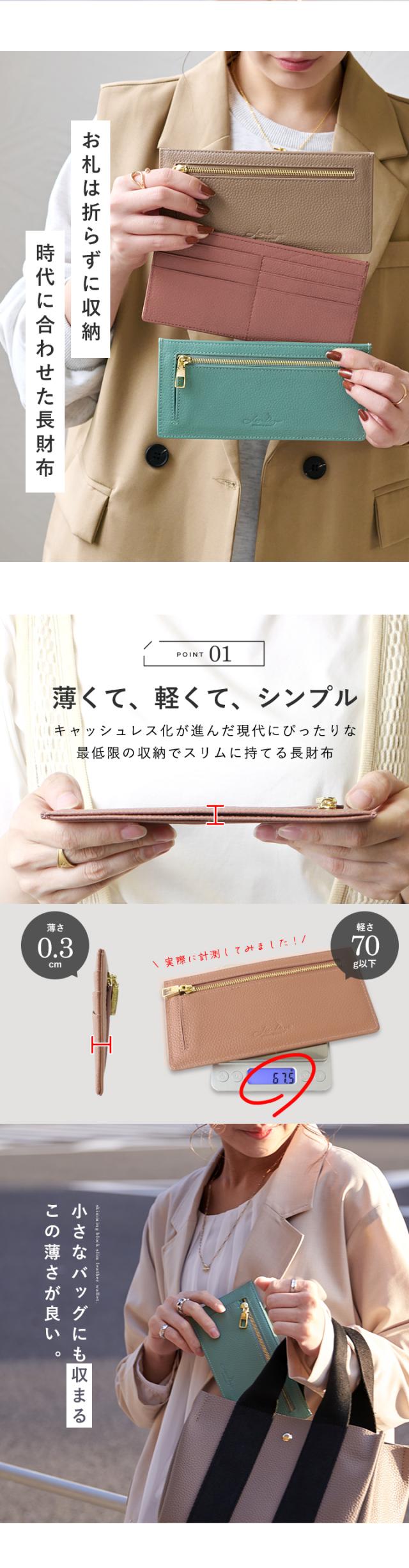 - バッグにスッキリ収まります。コインも、まちありファスナーポケットに沢山入り取出しやすいです。欲をいえばややお札のペース気持ち広ければ。でもあくまでもスリムで…良いと思います。