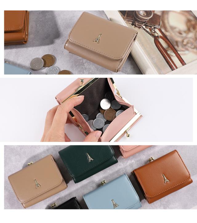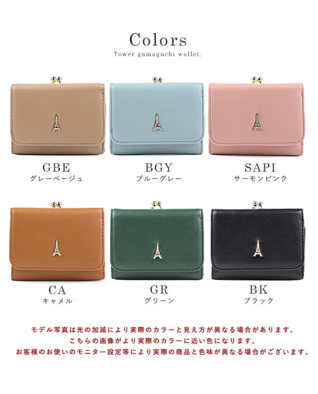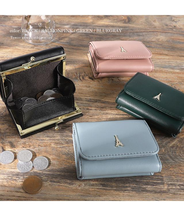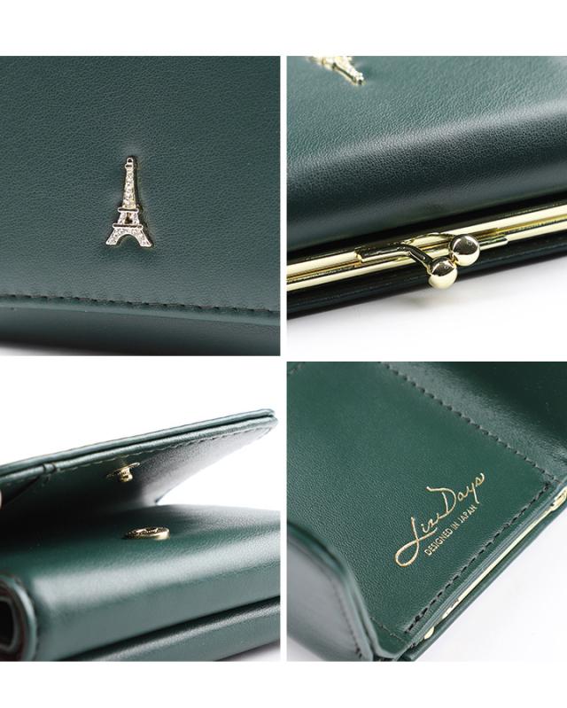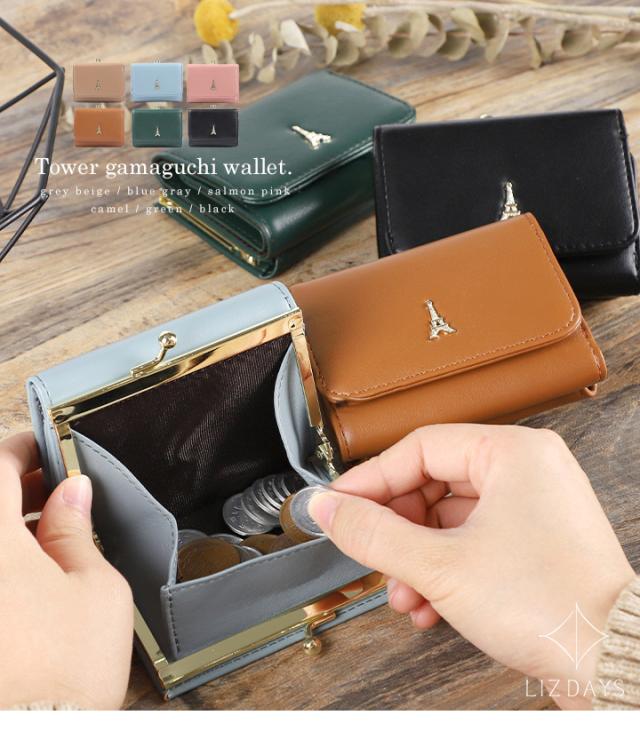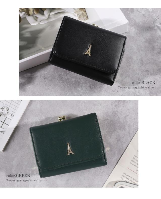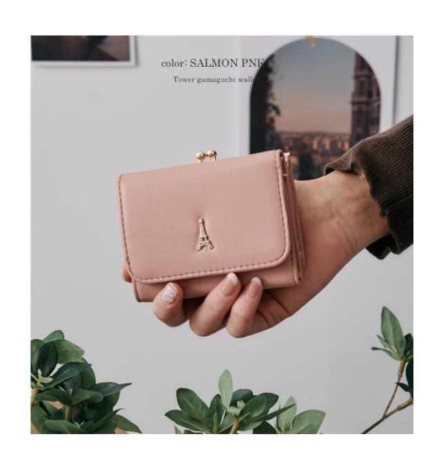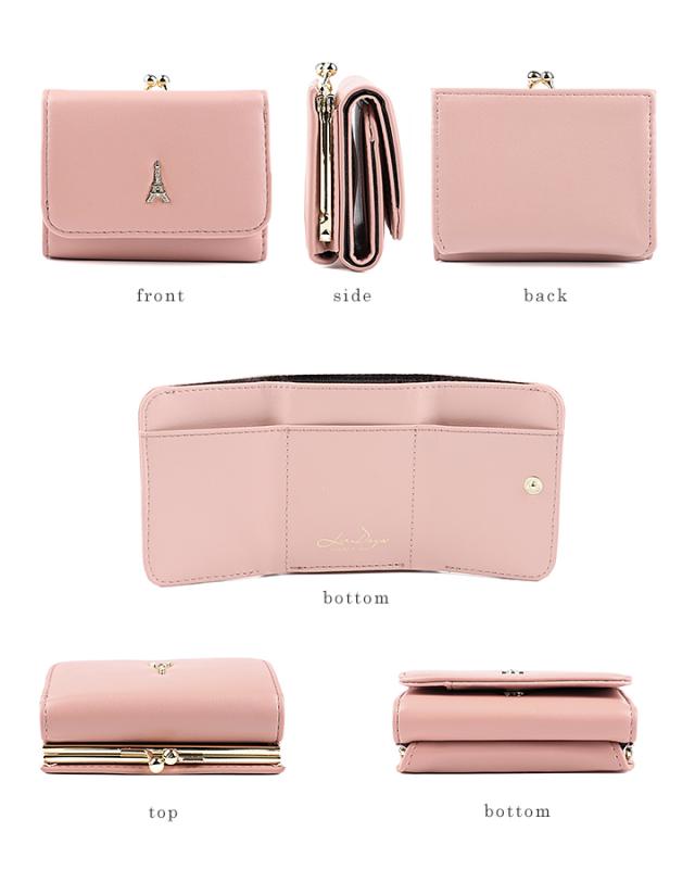 三つ折り財布 レディース 財布 がま口 小銭入れ コインケース コンパクト ミニ財布 カード入れ お札入れ 多収納 おしゃれ LISDAYS リズデイズ 大人 ウォレット PUレザー エッフェル塔 シンプル ガバっと開く キャッシュレス プレゼント【lz-0919r】