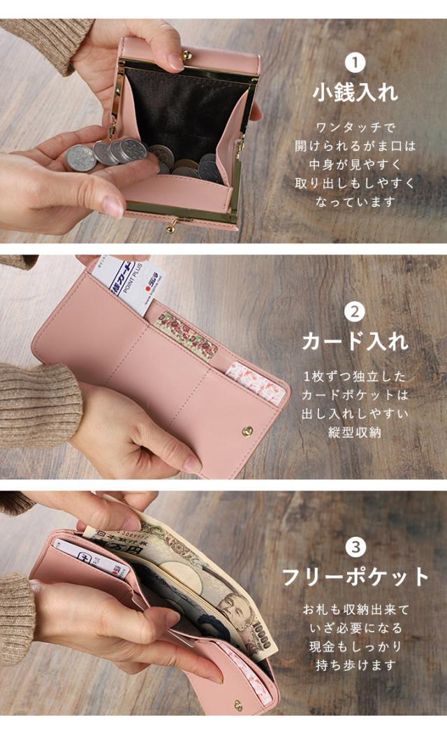 小銭入れはがま口仕様で大きく開くので中身が見やすい♪