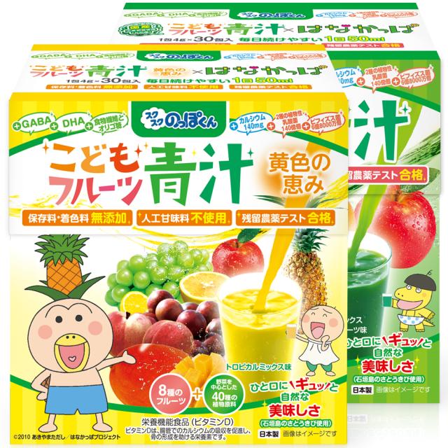 はなかっぱ監修 こどもフルーツ青汁 2箱 味違いセット(青+黄色)60日分 少食 偏食 野菜不足 乳酸菌 ビタミン ベータカロテン 鉄分 国産大麦若葉