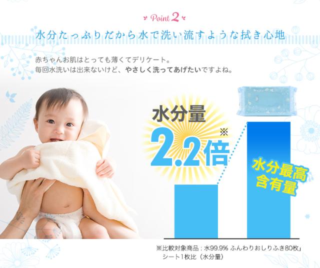 約2.2倍の水分量を含んだ水分たっぷりのおしりふき。