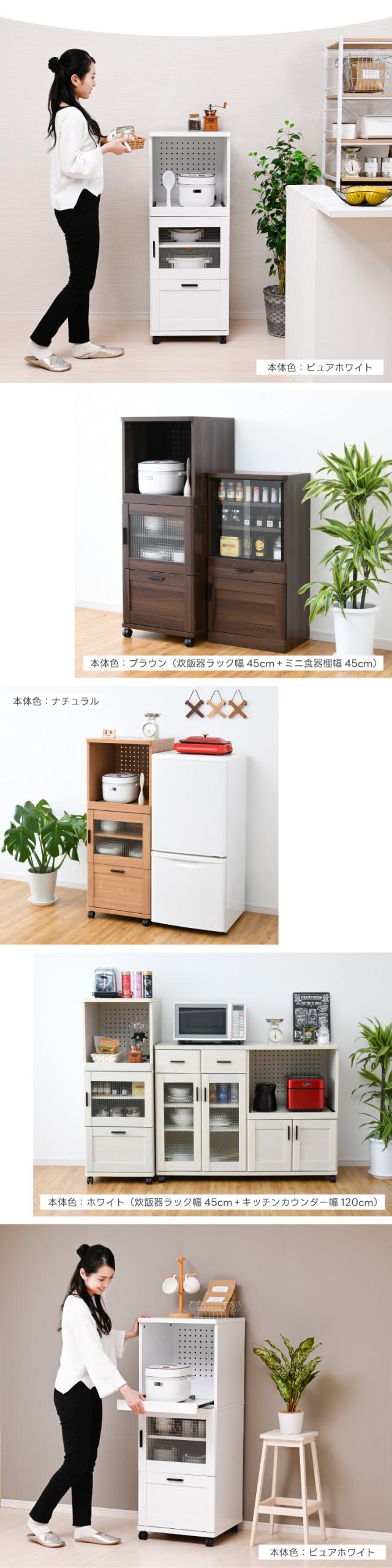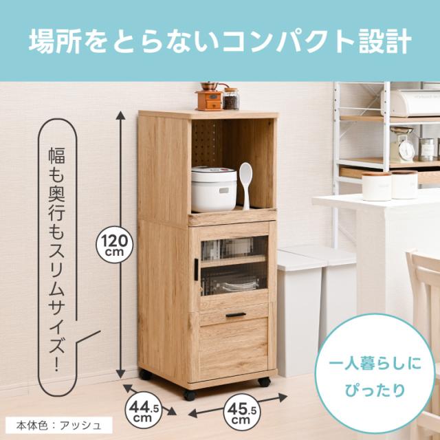 レンジ台 キャスター付き コンセント付き コンパクト ミニ スリム 炊飯器ラック 幅45cm 食器棚 食器 レンジボード レンジラック キッチン収納 スライドテーブル ワゴン おしゃれ かわいい 北欧 ホワイト