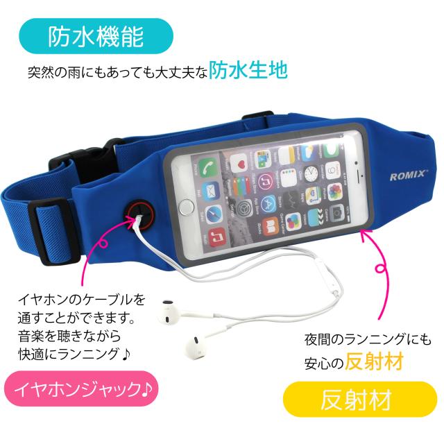 ROMIX ランニングポーチ 防水 防汗 RH16 釣り ウォーキング スポーツ ジョギング 登山 ボディバッグ スマホ 小物入れ ウエストバッグ