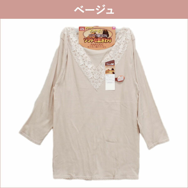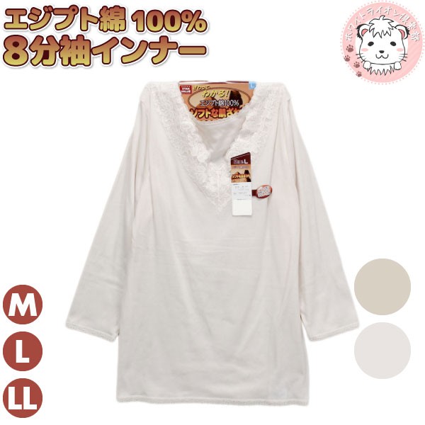 さわってわかるエジプト綿 幅広レース 綿100% 8分袖インナー 2枚セット M/L/LL | レース インナーシャツ 八分袖 長袖 インナー レディース 下着 肌着