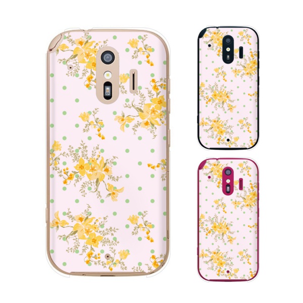 docomo らくらくスマートフォン me F-01L スマホ ケース カバー 花柄ドット ピンク/黄色