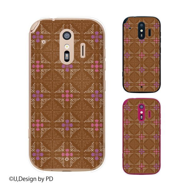 docomo らくらくスマートフォン me F-01L スマホ ケース カバー チョコレート リボン 茶色