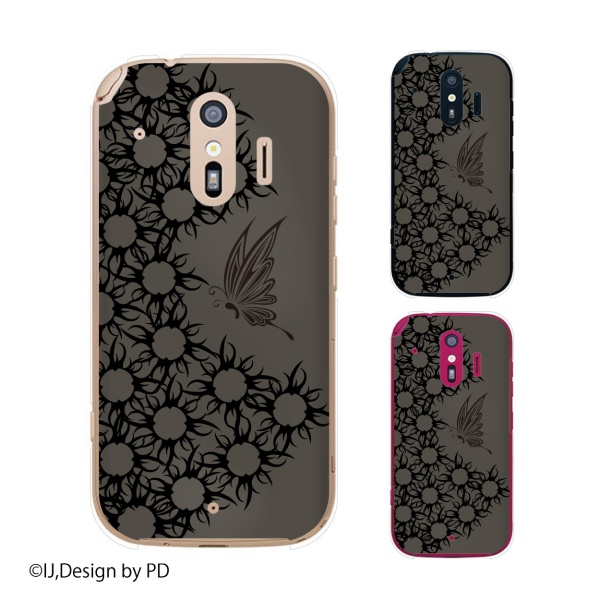 docomo らくらくスマートフォン me F-01L スマホ ケース カバー トライバル3 蝶 灰色
