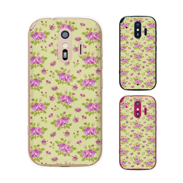 docomo らくらくスマートフォン me F-01L スマホ ケース カバー ローズ4 黄緑
