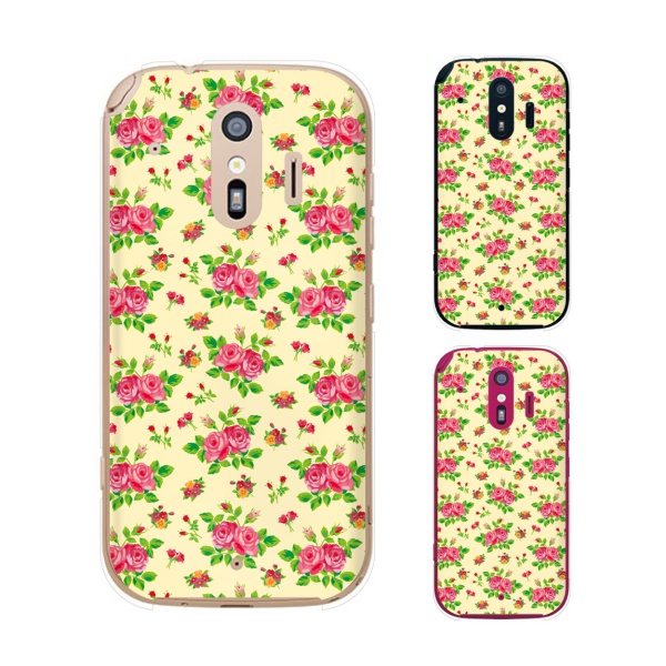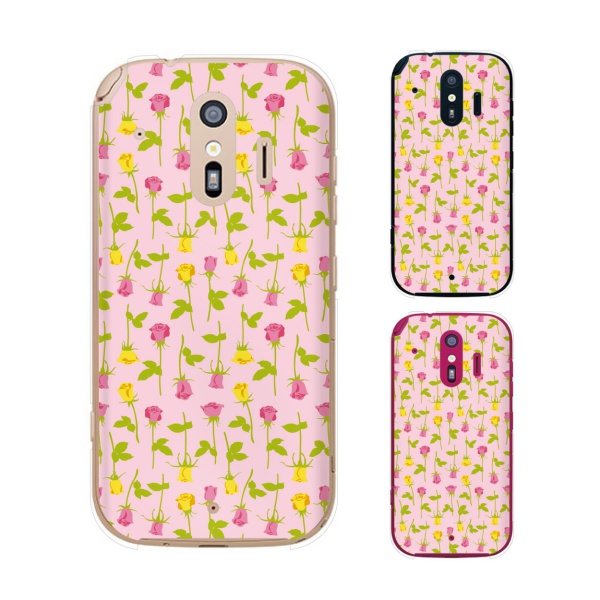 docomo らくらくスマートフォン me F-01L スマホ ケース カバー ローズ7 黄色/ピンク