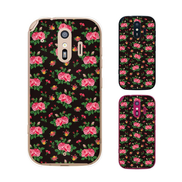docomo らくらくスマートフォン me F-01L スマホ ケース カバー ローズ3 黒