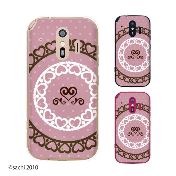 docomo らくらくスマートフォン me F-01L スマホ ケース カバー レース5 ハート ピンク