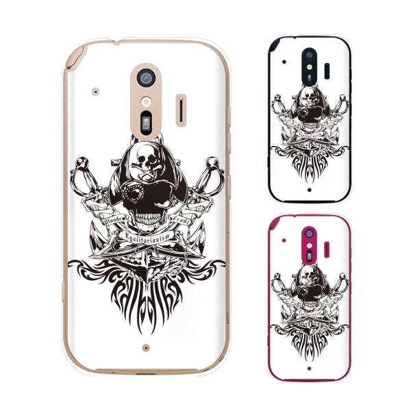 docomo らくらくスマートフォン me F-01L スマホ ケース カバー スカル5 白黒