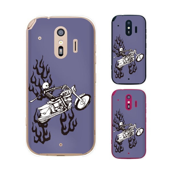 docomo らくらくスマートフォン me F-01L スマホ ケース カバー スカル7 バイク 青紫