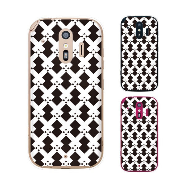 docomo らくらくスマートフォン me F-01L スマホ ケース カバー パターン21 白/黒/茶