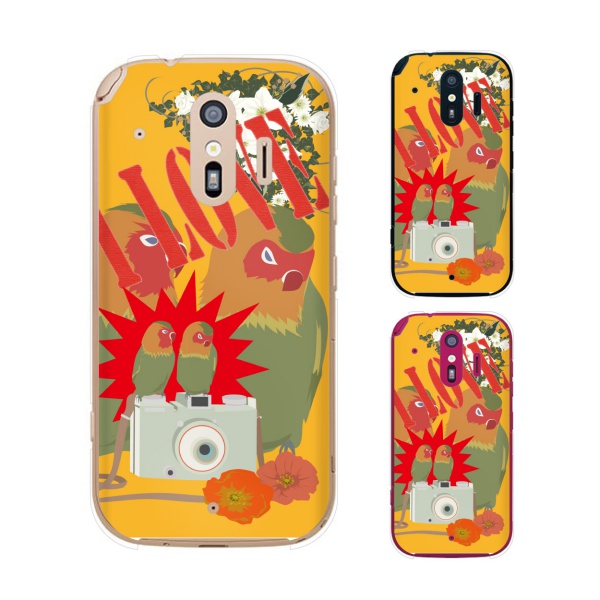 docomo らくらくスマートフォン me F-01L スマホ ケース カバー I love インコ オレンジ