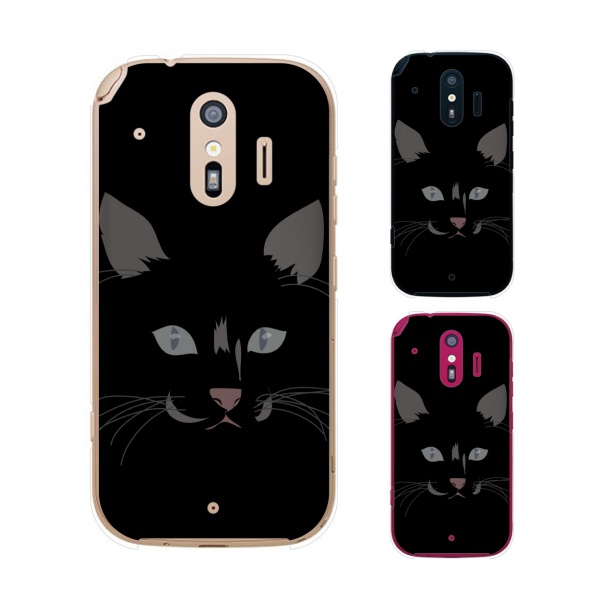 docomo らくらくスマートフォン me F-01L スマホ ケース カバー 猫の顔1 黒
