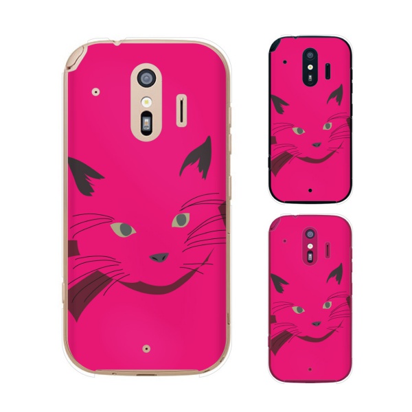 docomo らくらくスマートフォン me F-01L スマホ ケース カバー 猫の顔3 リボン ピンク