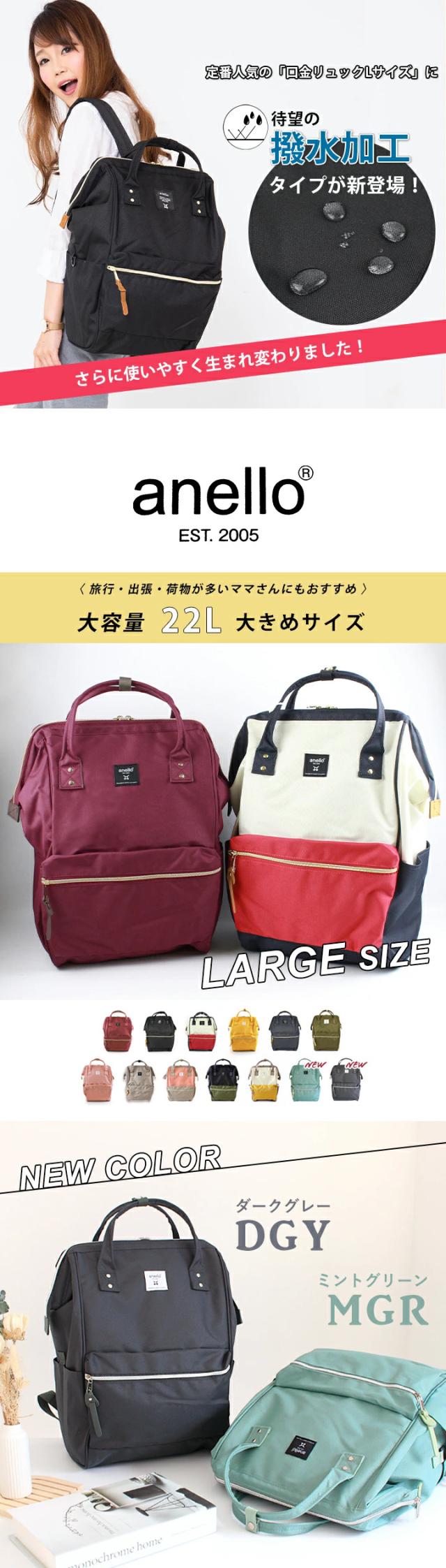 - 荷物持ちの私にもってこいのアネロリュック。ピンク色、ラージサイズを購入。 可愛くてたくさん物が入るので大満足です。 でも、日常使いには、少し大きすぎたかな?日常使いには普通サイズが便利かもです。 旅行とかお出かけにはもってこい!です。
