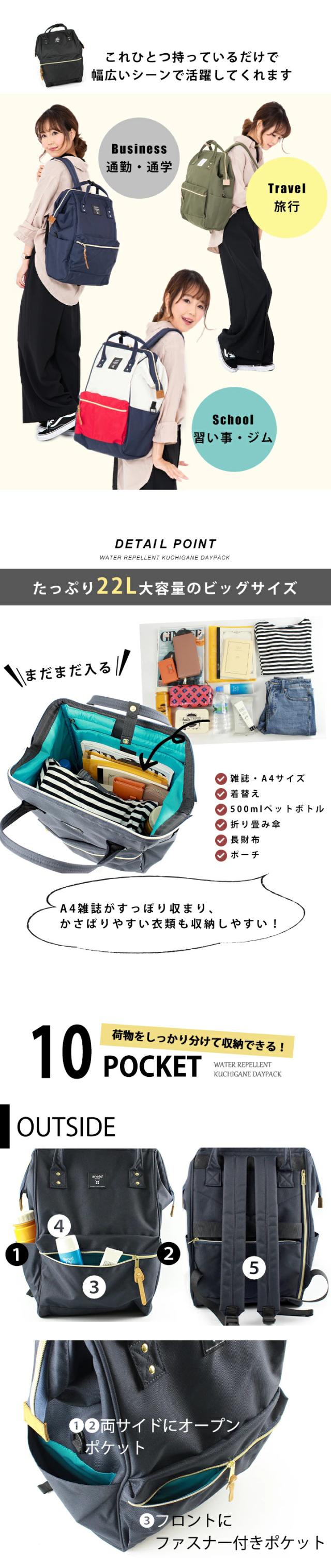 anello アネロ リュック リュックサック 大容量 レディース メンズ バックパック 大きい A4 軽量 デイパック 撥水リュック おしゃれ 大人 マザーズリュック 口金 背面ファスナー 通学 通勤 旅行 Lサイズ 多収納 ユニセックス【b2521r】