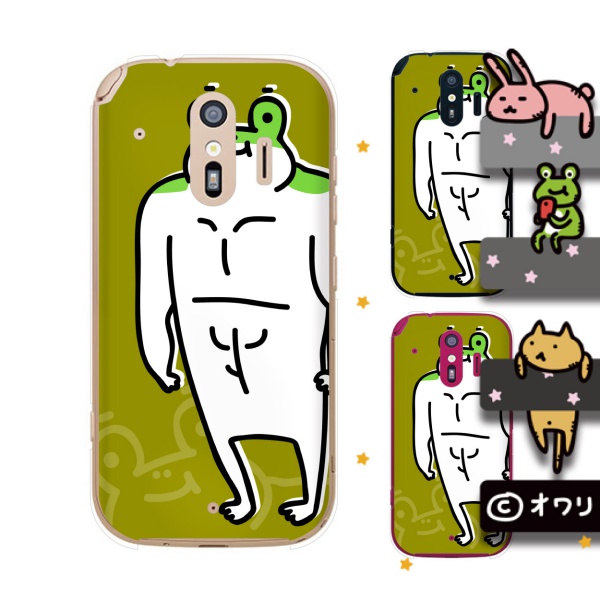 docomo らくらくスマートフォン me F-01L スマホ ケース カバー オワリ 「筋肉のあるカエル」 グリーン
